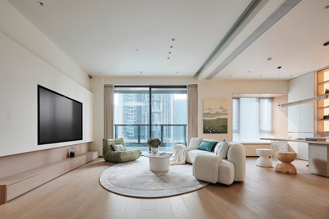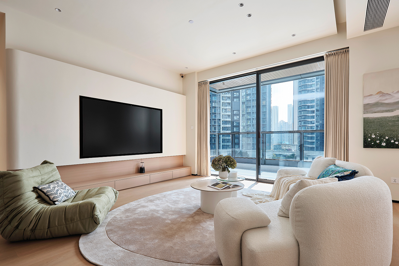 家的定义从来没有固定正解。业主向往简单、去繁就简的生活方式,设计师以此为切入点,在优化格局与动线的基础上,引入“现代奶油风”的核心概念——用最柔软的色彩包裹有故事的线条,用最治愈的氛围回应都市的疲惫 。