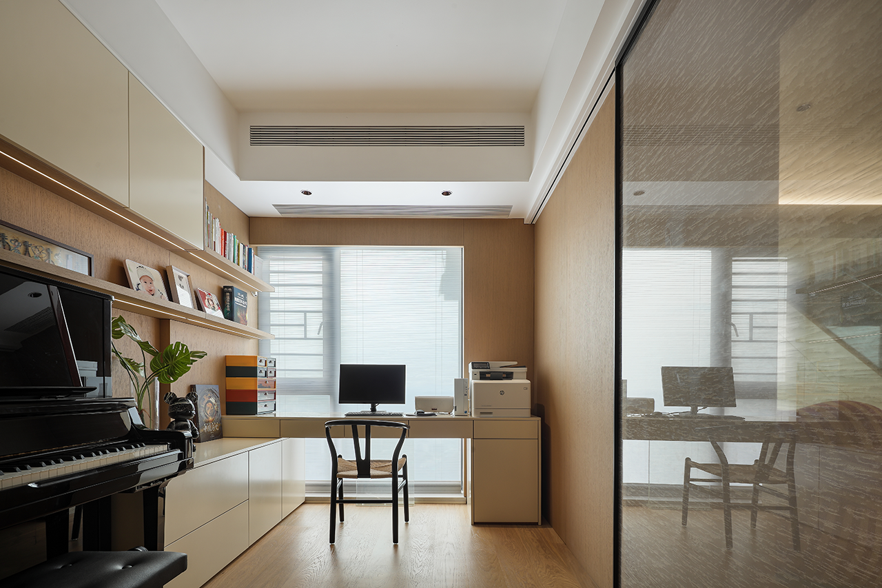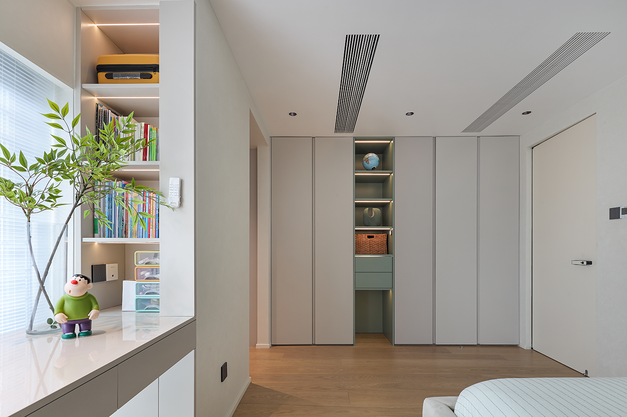专门为三个小孩设计的学习空间,配备了舒适的桌椅和充足的照明。墙壁上的星辰壁纸,激发孩子们的想象力和创造力。学习空间还设置了展示区,用于展示孩子们的作品和荣誉,增强他们的自信心和成就感。