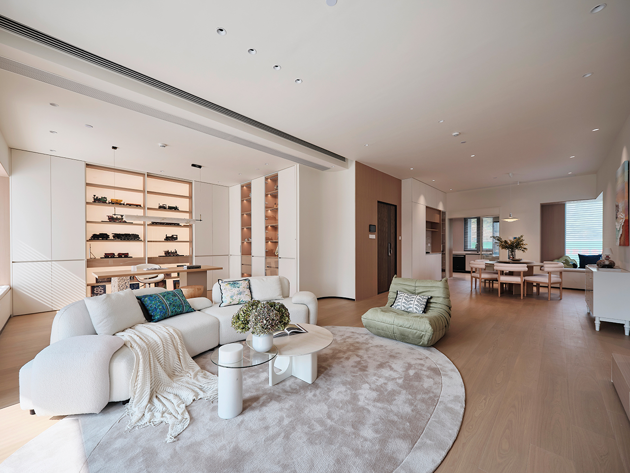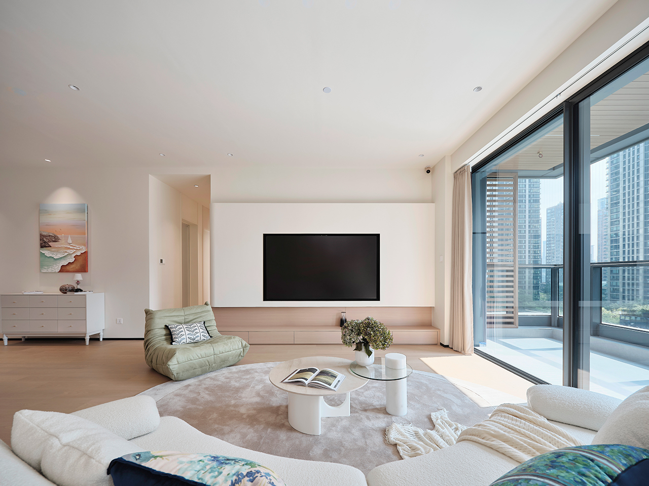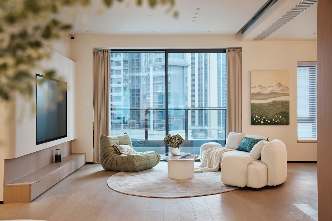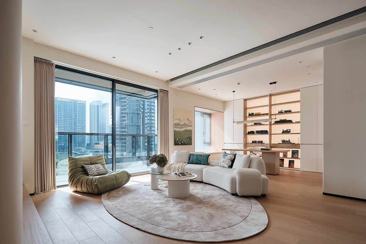 家的定义从来没有固定正解。业主向往简单、去繁就简的生活方式,设计师以此为切入点,在优化格局与动线的基础上,引入“现代奶油风”的核心概念——用最柔软的色彩包裹有故事的线条,用最治愈的氛围回应都市的疲惫 。