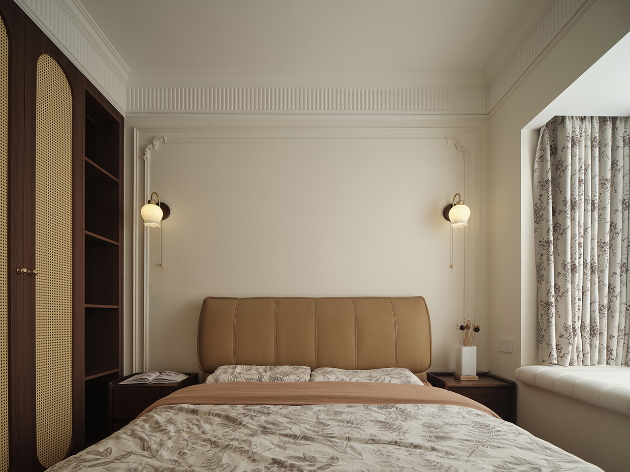 这里没有冰冷的石材,没有锋利的金属。木的温、布的柔、皮的韧,共同构建了一个亲肤、安全、让人彻底放松的包裹空间。
