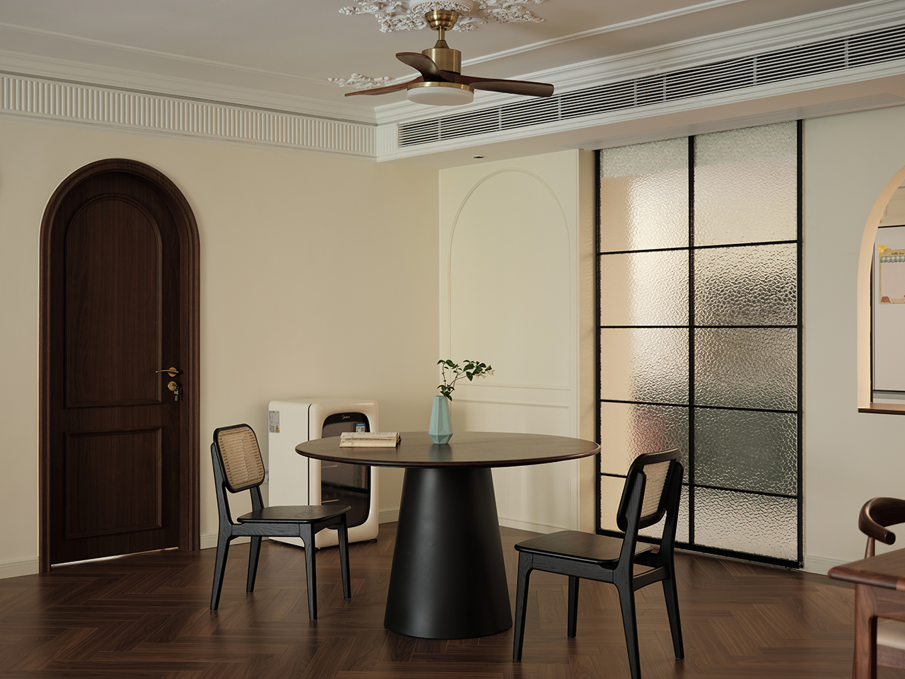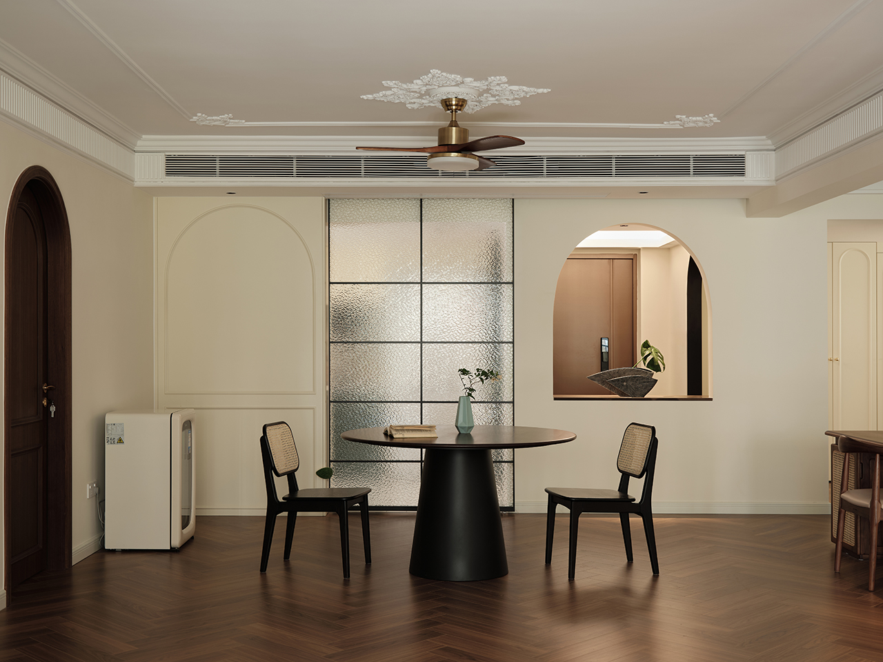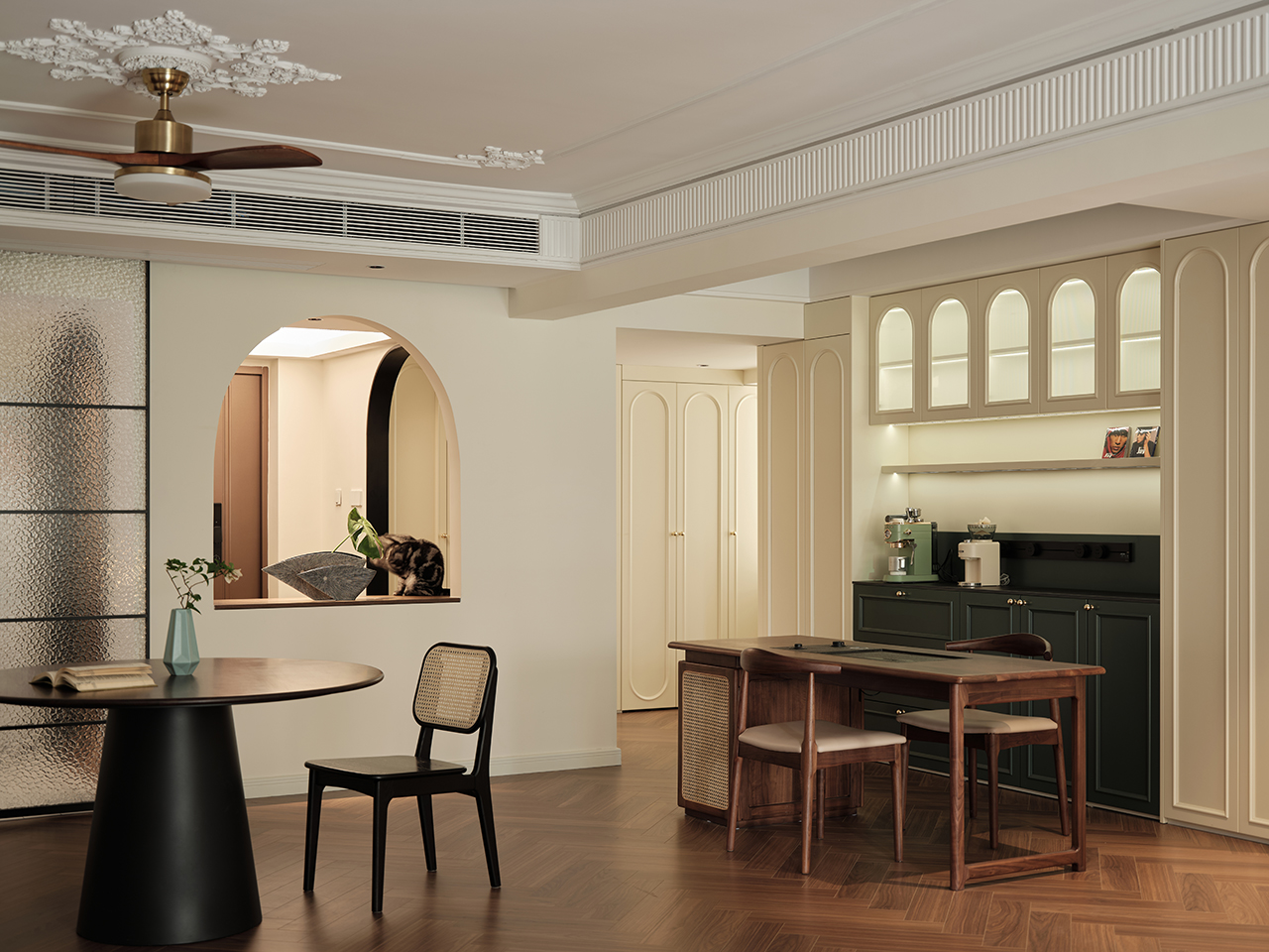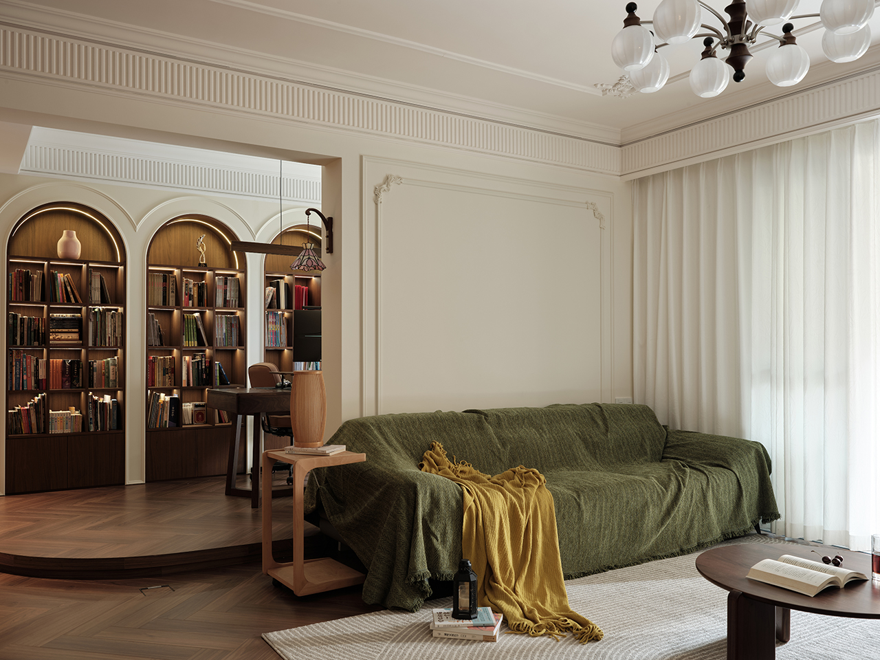 在法式复古的浪漫基调下,它不追求样板间的“无瑕”,而是追求日常的“舒适”。它能盛放一场高朋满座的晚宴,也能安顿一个独处阅读的午后。
